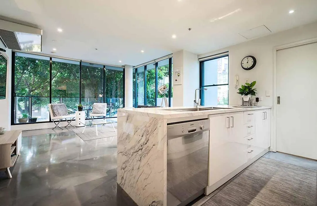 Es gibt auch eine voll ausgestattete Küchenzeile mit einem Herd und einem Geschirrspüler. Diese Unterkünfte ist in 250 Meter Entfernung von der Bushaltestelle Waterfront City/Footscray Road.